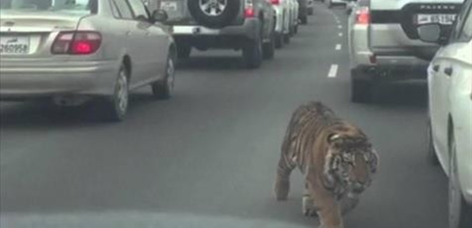 بالفيديو.. نمر طليق يثير الرعب في شوارع قطر!
