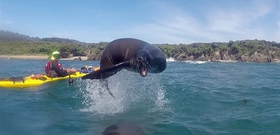 منح كلب بحر ابتسامة رائعة لكاميرا راكب أحد القوارب بعد أن دار حول عدد من القوارب في مرح. وفقاً لما نشرته صحيفة "ديلي ميل" البريطانية، قفز كلب البحر من أسفل أحد القوارب بعد أن دار حولها في سعادة، ثم ابتسم بينما يطير في الهواء أمام الكاميرا ليعود مرة أخرى للمياه وسط ضحكات راكبي القوارب. تتبع كلب البحر القوارب من خلال المياه على بعد 30 كيلو متراً بجنوب نيوزيلندا.