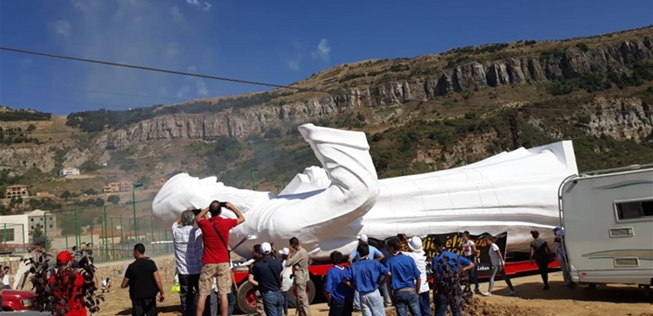 يذكر أنّه تمّت الإستعانة برافعتين لوضع التمثال في مكانه على القاعدة المخصصة له، ثمّ أقيمت الصلاة في المكان. كما يشار الى أنّه سيتمّ تدشين التمثال رسميا برعاية البطريرك الماروني الكاردينال مار بشارة بطرس الراعي في 22 الجاري.