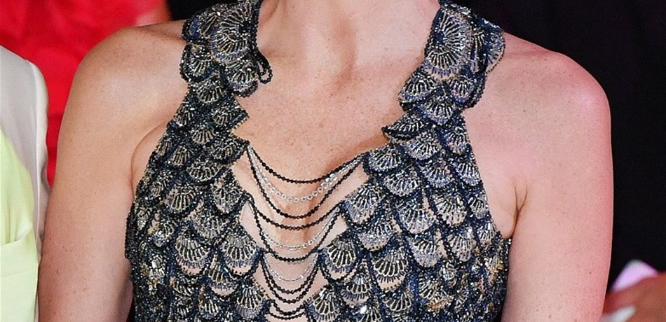 وتألقت الأمير بفستان فضي اللون حمل توقيع دار فرساتشي وكشف عن مفاتنها.