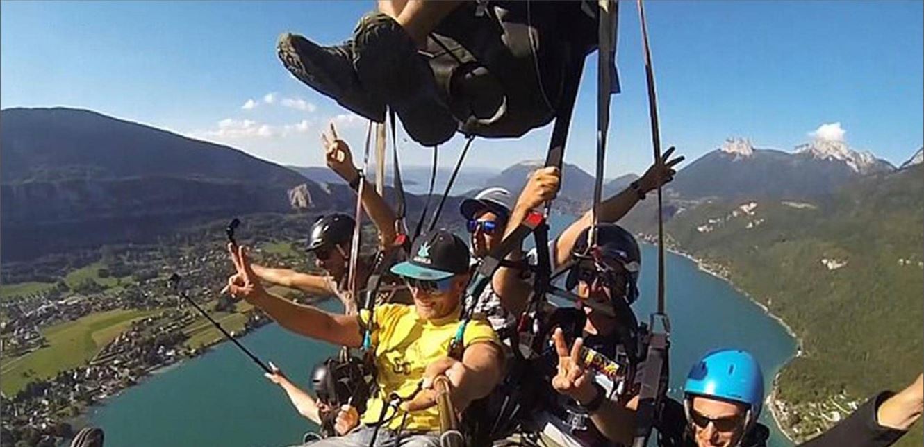 وقام "المتهوّرون الـ 7" بالتحليق في الهواء في منطقة أنيسي في فرنسا، على ارتفاع 1650 متراً، مستخدمين مظلّة من القماش بلغت مساحتها 344 متراً مربعاً.