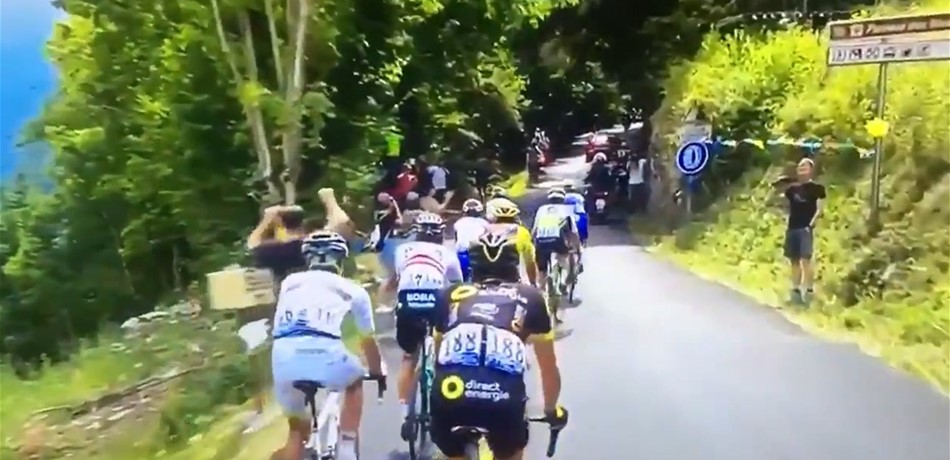 شهدت المرحلة العاشرة من سباق فرنسا للدراجات الهوائية لقطة في غاية الخطورة، بجانب أحد المنحدرات في أولى مراحل السباق في جبال الألب الشهيرة.