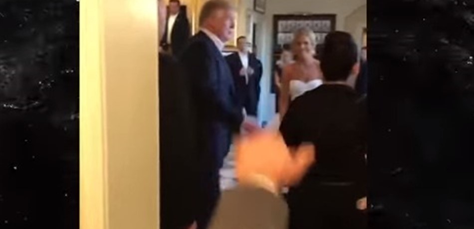 وجد الرئيس الأميركي دونالد ترامب نفسه فجأة في صالة يجري فيها حفل زفاف، ما شكل مفاجأة كبيرة للعريسين والمدعوين.