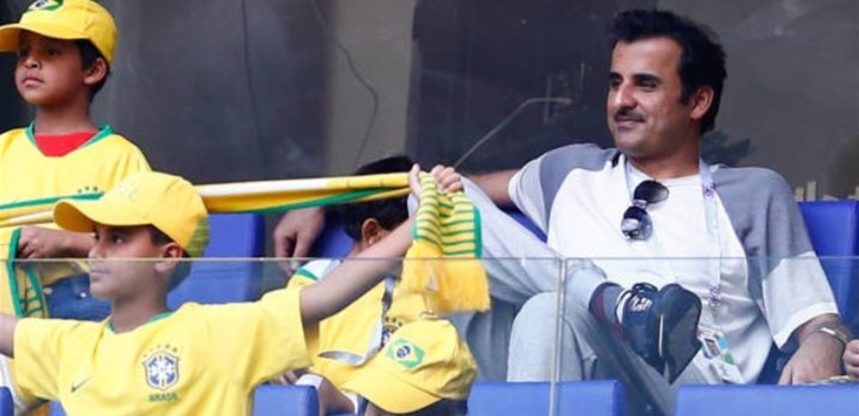ونشرت وسائل إعلام قطرية، صورا تظهر الشيخ تميم رفقة أبنائه الذين كانوا يشجعون البرازيل في مدرجات ملعب كوسموس بمدينة سمارا الروسية.