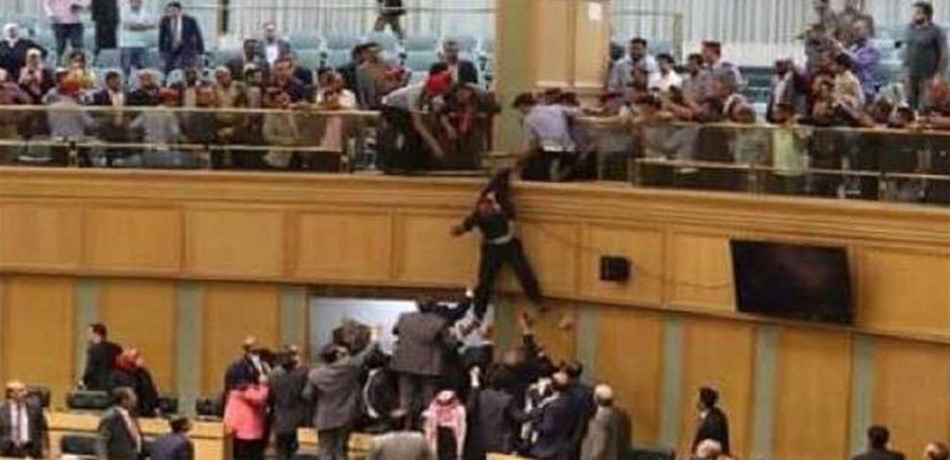 انتشرت عبر مواقع التواصل الاجتماعي مقاطع مصورة لمواطن أردني يقفز من شرفة مجلس النواب خلال جلسة للتصويت على منح الثقة لحكومة رئيس الوزراء عمر الرزاز.