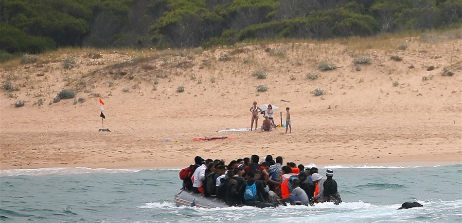 ووسط صدمة روّاد الشاطئ العراة الممددين على الرمال تحت أشعة الشمس، وصل قاربٌ مطاطيّ الى الشاطئ وترجّل منه عشرات الرجال، الذين هرعوا مسرعين باتجاه الغابات التي تحيط بالشاطئ الرمليّ.