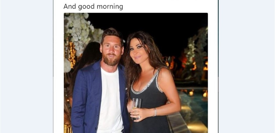نشرت الفنّانة إليسا صورة جديدة إلى جانب نجم كرة القدم العالمي ليونيل ميسي، وعلّقت عليها: "صباح الخير".