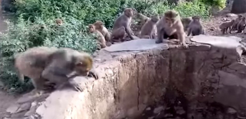 أظهر مقطع فيديو انتشر في الهند، قيام مجموعة من القرود الفضولية بالمساعدة في إنقاذ حياة نمرٍ بعد سقوطه في بئر عمقها 25 قدماً.