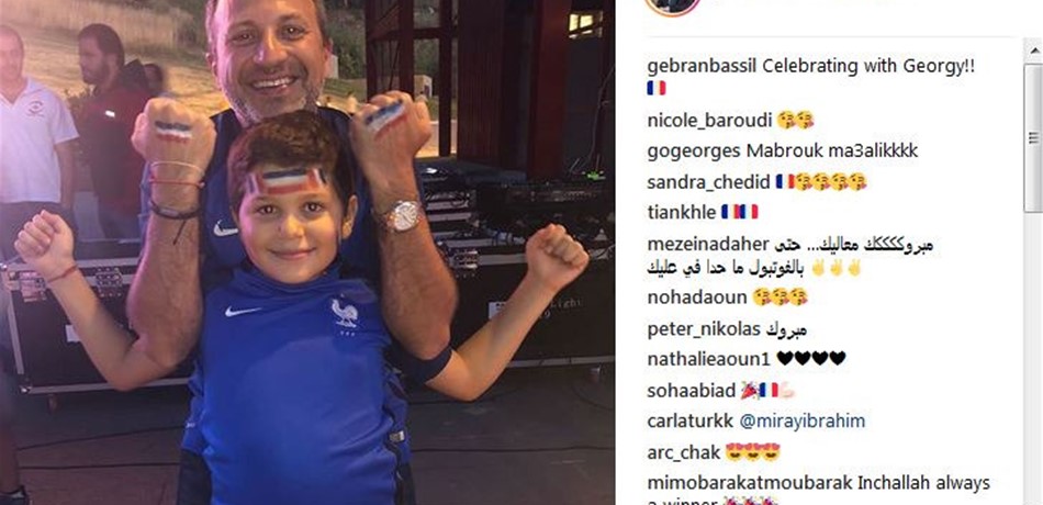 وقد نشر باسيل "story" عبر حسابه على تطبيق "إنستاغرام" ظهر فيها ابنه جورج وهو يرقص ويهلّل فرحًا بالهدف الرابع الذي سجّله المنتخب الفرنسي في النهائي، قبل أن ينشر فيديو آخر، ظهر فيه وهو يرقص مع زوجته احتفالاً بفوز فرنسا بكأس العالم بنتيجة 4-2 ضد كرواتيا.