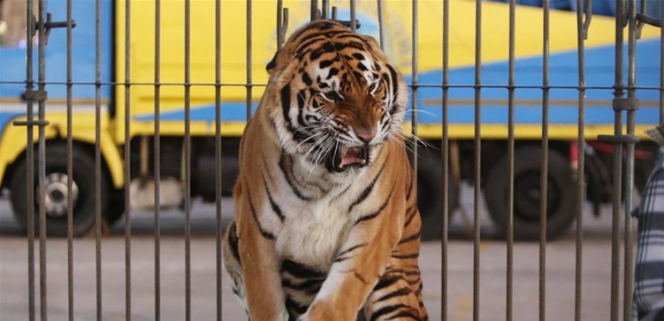 نمرٌ يهرب من عرض "سيرك".. ثمّ ينفق! (فيديو)