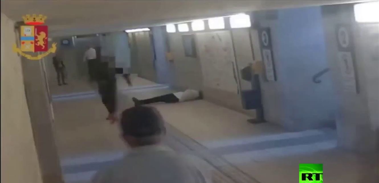 وثّقت كاميرات المراقبة في مدينة ليكو الإيطالية، 9 ايلول الجاري، مقاطع فيديو لشاب غريب الأطوار يهاجم المارة بلا سبب.
