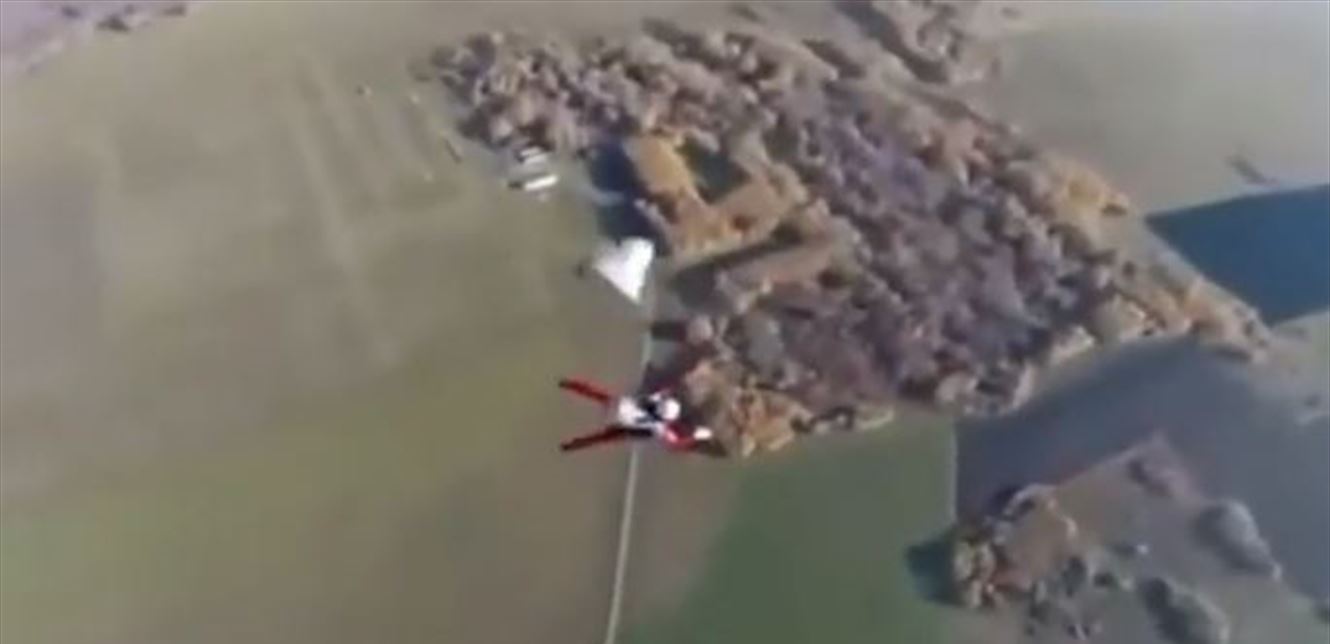 ولم يتمكّن صاحب الـ35 عاماً من فتح المزلاق المخصص لاندفاع الباراشوت؛ فلجأ بعد ذلك للمظلة الاحتياطية التي علقت أشرطتها ببعضها.