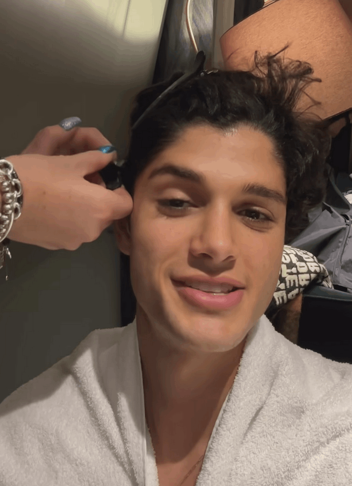 ولفت لؤي الأنظار بتسريحته حيث اعتمد تسريحة الشعر المبلل.