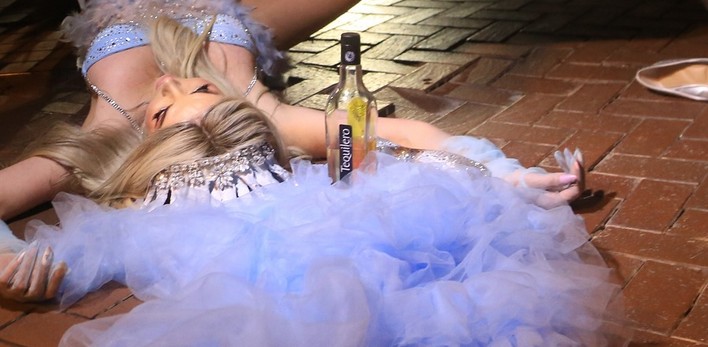 وأكلت ممدة على الأرض وإلى جانبها زجاجة كحول.