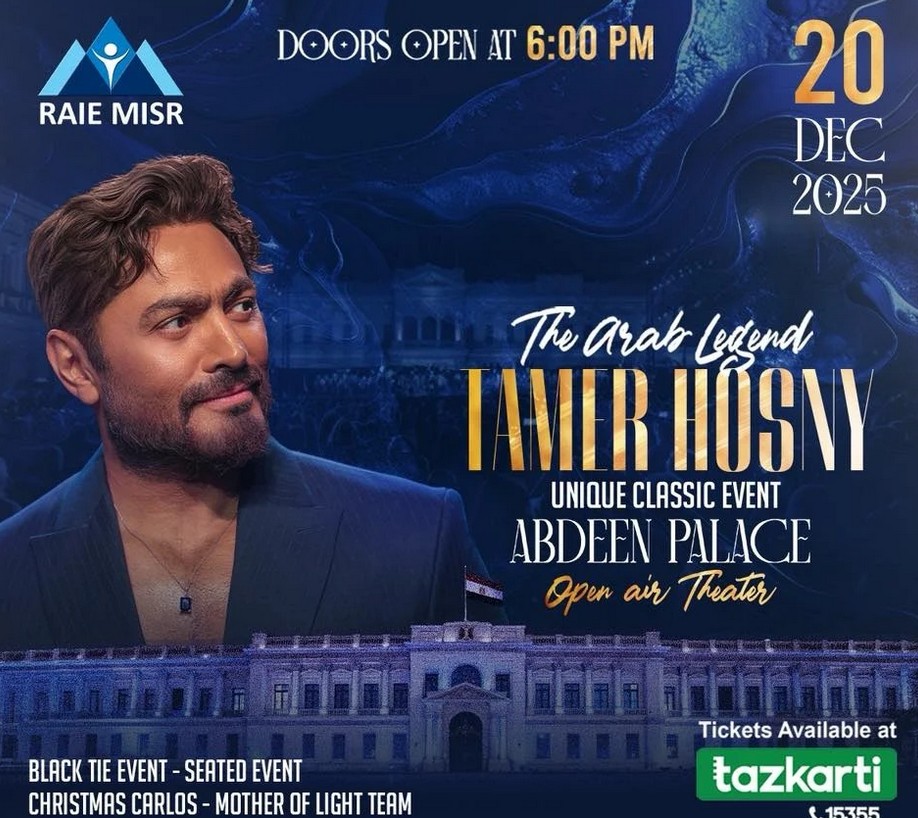 في قصر عابدين يوم 20 كانون الأول، استمتعوا بأمسية كاملة العدد مع أشهر أغانيه وأجواء ساحرة في واحد من أهم معالم مصر".