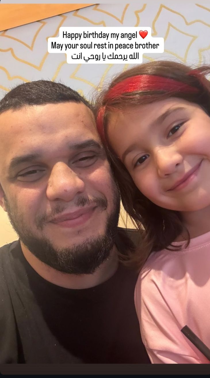 صورة لشقيقها الراحل عبدو، في يوم عيد ميلاده، وهو برفقة طفلته.
