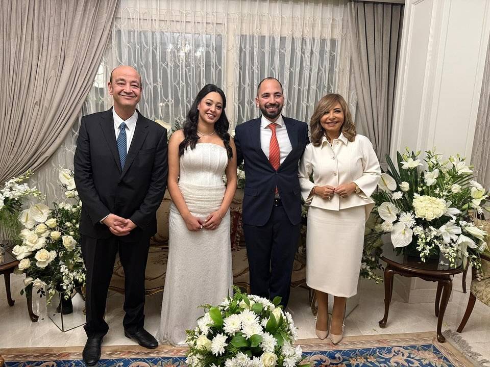 وأقيم الحفل في منزل العائلة، ظهر فيها عمرو ولميس في أجواء مليئة بالسعادة، وحرصا على التقاط الصور العائلية مع العروسين، في تكذيب لشائعة الطلاق.