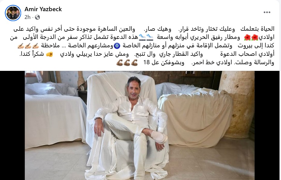 وكتب أمير قائلا: "الحياة بتعلمك وعليك تختار وتاخد قرار. وهيك صار. والعين الساهرة موجودة حتى آخر نفس واكيد على اولادي ومطار