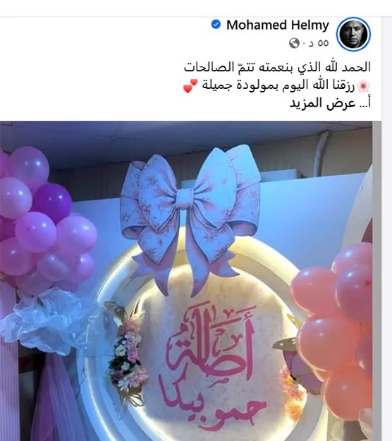 ونشر حلمي عبر صفحته على فيسبوك اسم المولودة، وكتب: "الحمد لله الذي بنعمته تتمّ الصالحات، رزقنا الله اليوم بمولودة جميلة، أسأل الله أن يجعلها من مواليد السعادة، واخترنا لها اسمًا يملأ القلب نورًا، أصالة حمو بيكا".