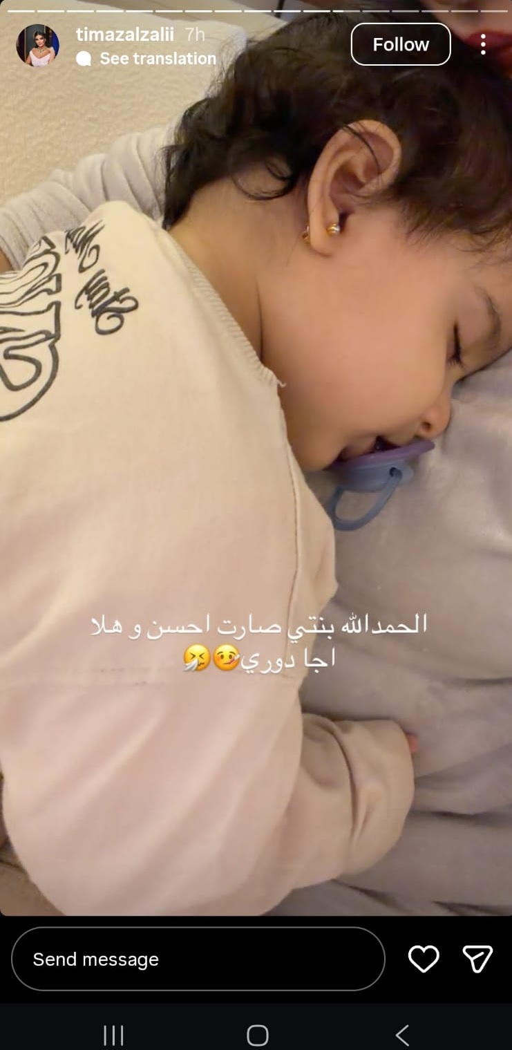 " لابنتها، وعلّقت قائلة: "الحمدلله بنتي صارت أحسن".