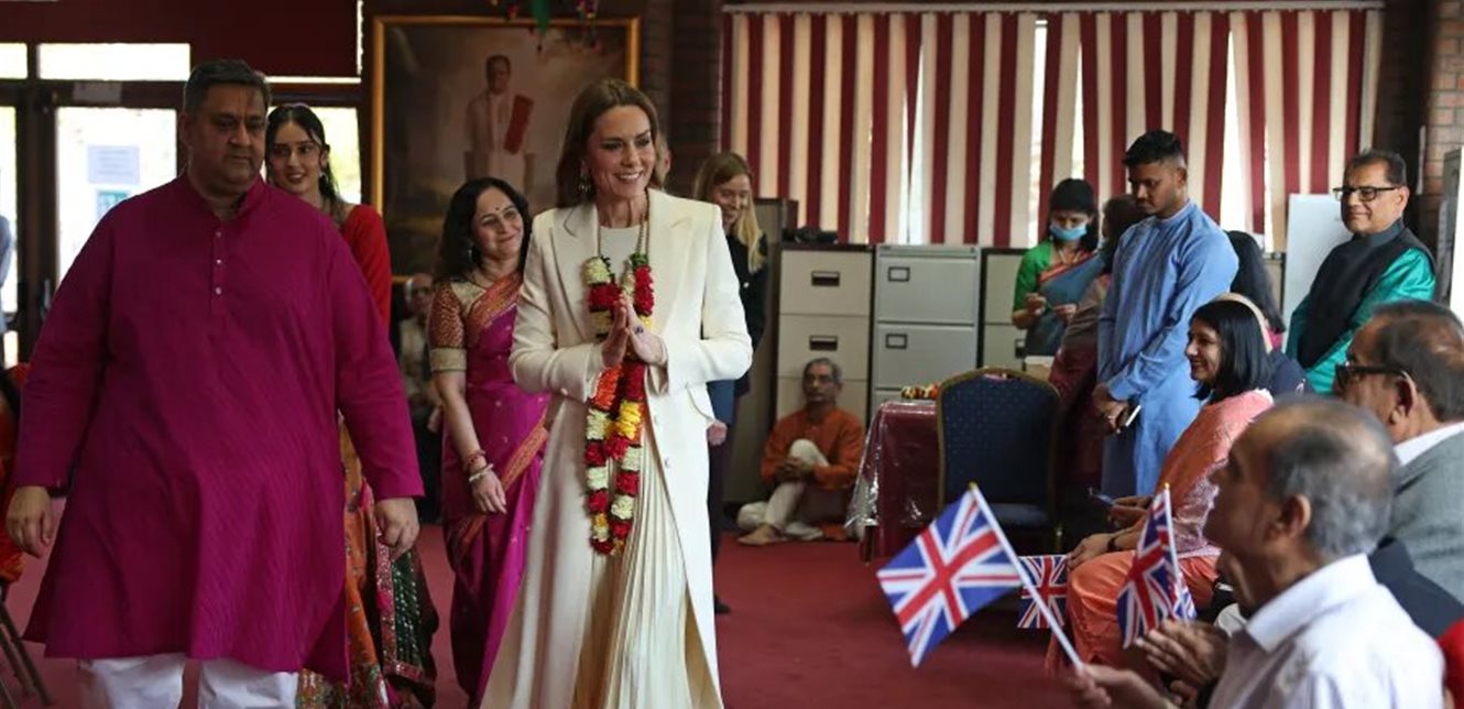 Kate Middleton, Member of British Royal family Breaks Royal protocol and goes Barefoot respecting temple customs and joins Garba dance at Shreeji Dham mandir in Leicester Beautiful Bhartiy rituals ☺️☺️ pic.twitter.com/sxyTvnJwVF — Sheetal Chopra 🇮🇳 (@SheetalPronamo) March 6, 2026
