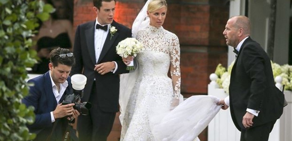 دخلت نيكي هيلتون وجيمس روتشيلد في العاشر من تموز الجاري، القفص الذهبي في أحد أجنحة قصر كينسنغتون، مقرّ دوق ودوقة كيمبريدج وليم وكاثرين في لندن. فنيكي (31 عاماً) هي إحدى وريثتي سلسلة فنادق هيلتون بثروة تقدر بنحو 300 مليون دولار، أمّا الوريثة الأخرى فهي طبعاً الشقيقة الكبرى للعروس باريس هيلتون (35 عاماً). أمّا جيمس فهو أحد ورثة عائلة روتشيلد الأكثر من شهيرة في عالم المال والمصارف، وتقدر ثروة والده بنحو مليار دولار. ومن هنا، جاءت تسمية زواجهما "زواج المليار دولار" من قبل وسائل الإعلام التي تهتم بعالم الشهرة والمال. وأكثر ما استحوذ على اهتمام الإعلام كان فستان العروس، ليس لأنّه فستان جميل وأنيق بتوقيع المصمم العالمي فالنتينو، أو لأنّ كلفته بلغت 50 ألف جنيه استرليني، بل بسبب ما سببه للعروس من مشاكل أثناء المشي وأكثر من مرّة. ففي احدى هذه المرات "علقت" الطرحة الطويلة تحت اطار سيارة "بنتلي" الفاخرة، ما حال دون تقدم العروس قبل تدخل رجال الأمن. وفي مرّة أخرى، ظهر جزء من ثياب العروس الداخلية.