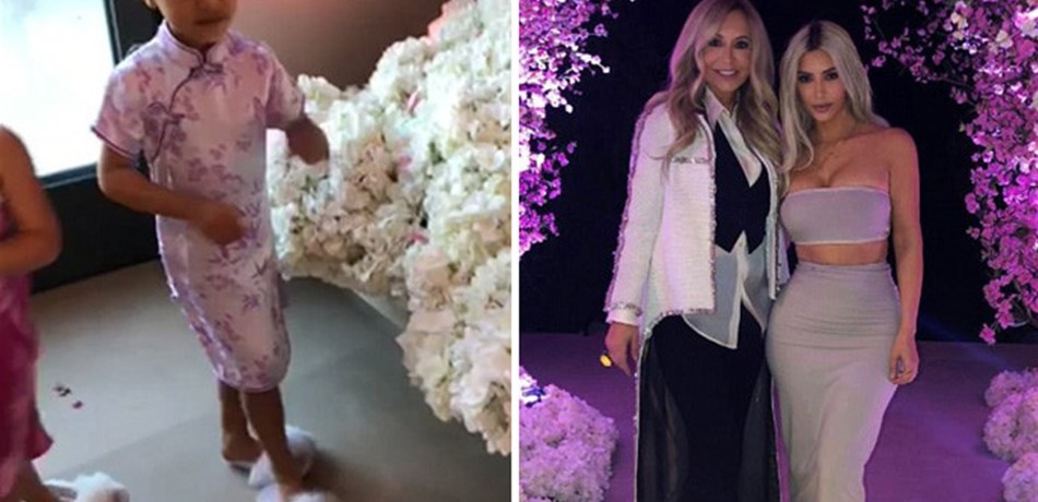 أقامت نجمة تلفزيون الواقع حفل "بيبي شاور" عنوانه "الشاي لثلاثة أشخاص" استعداداً لقدوم طفلها الثالث من أم بديلة. وذلك في مكان ساحر تزينه أشجار الكرز المزهرة. ودعت إلى هذا الحفل عدداً كبيراً من أصدقائها وأصدقاء زوجها المغني كانيي ويست ومنهم مليكا وخديجة حق، كريسي تينيين، جوردن وود ولاريسا بيبن. وذلك إلى جانب أفراد العائلة كريس جنير، كلوي كارداشيان، كيلي جنير، كيندال جنير، نورث ويست. وتميز الحفل بديكور فريد حيث اخترات كيم أزهار الكرز موضوعاً أساسياً له وزيّن المكان بأشجار كرز مزهرة وصولاً إلى قاعة الشاي. كما قدمت النجمة لمدعويها عينات من عطرها الذي ستطلقه قريباً KKW.