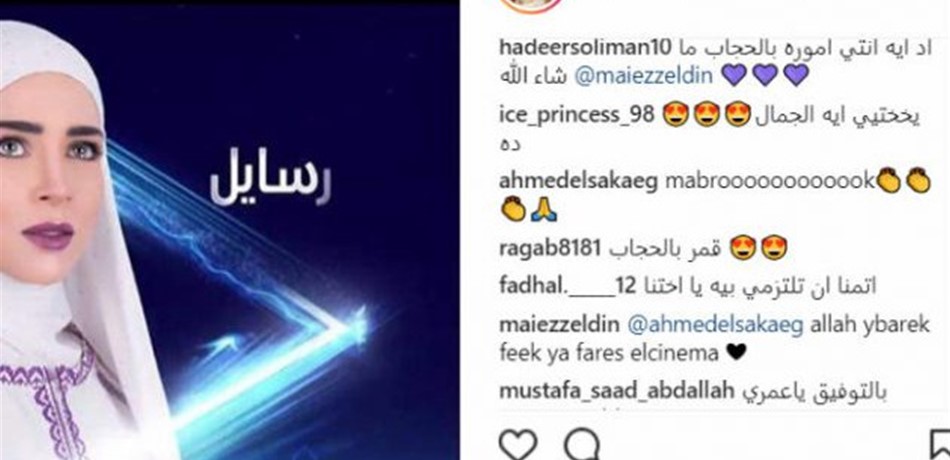 ظهرت الفنانة مي عز الدين في صورة وهي ترتدي الحجاب، وحرص أغلب النجوم على تهنئتها بمسلسلها الجديد ومن ضمن الفنان المصري أحمد السقا الذي كتب تعليقاً على صورتها جاء فيه: "مبروك".