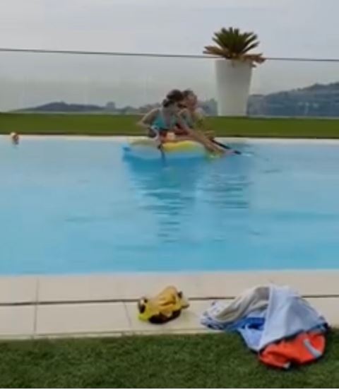 نشرت الفنانة اللبنانية نانسي عجرم عدداً من الصور لإبنتيها ميلا وإيلا أثناء تواجدهما في مسبح منزلهما، حيث بدتا في غاية السعادة ومارستا رياضة السباحة بمهارة عالية.