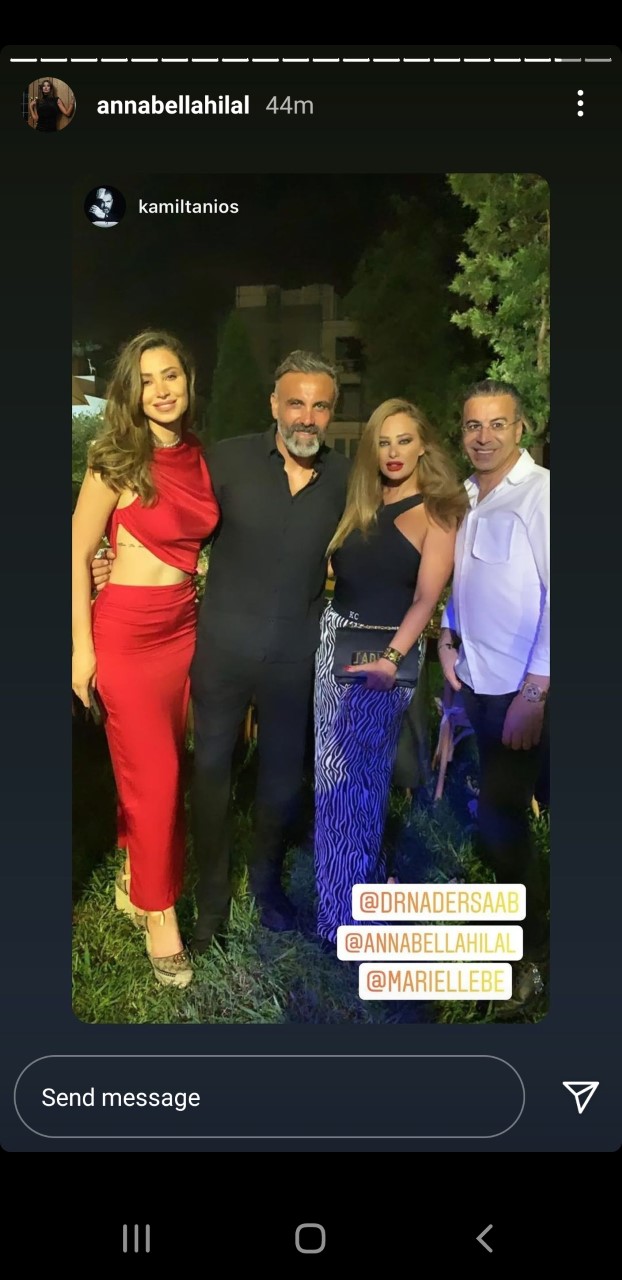 انتشر فيديو للمذيعة ومقدمة البرامج أنابيلا هلال ظهرت فيه وهي ترقص على أغاني الفنان فارس كرم في حفل عشاء خاص أقامه زوجها الدكتور نادر صعب في منزلهما بحضور بعض الأصدقاء المقرّبين.