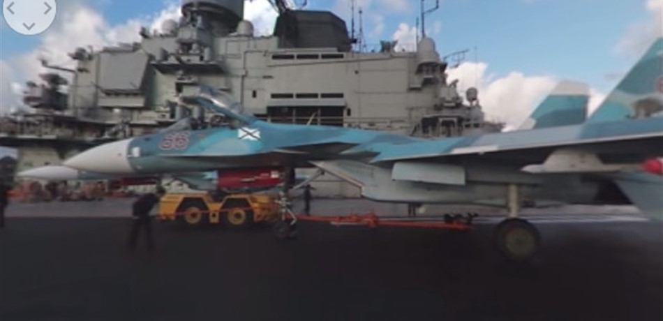 نشرت قناة "روسيا اليوم" فيديو بتقنية 360 درجة، يتيح التجول على سطح حاملة الطائرات "الأميرال كوزنيتسوف" ومشاهدة عملية إقلاع المقاتلات سو- 33. للمزيد شاهد الفيديو المرفق (روسيا اليوم)