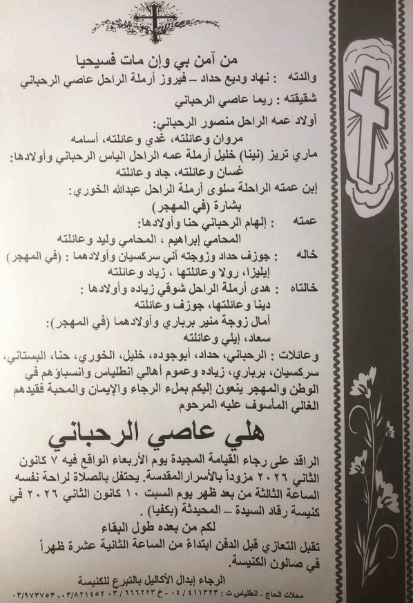 بالصورة... هذا موعد التشييع والتعازي بهلي الرحباني نجل السيّدة فيروز