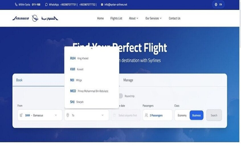 الحجز والدفع إلكترونيًا… الخطوط السورية تكشف عن منصتها الرقمية الجديدة