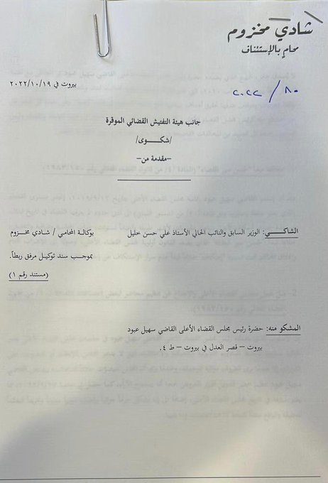 علي حسن خليل يتقدّم بشكوى ضدّ القاضي سهيل عبود (صورة)