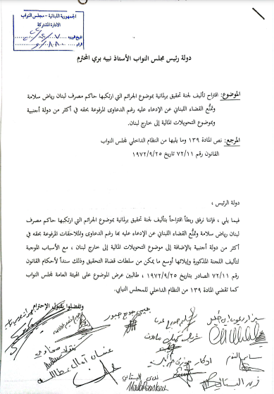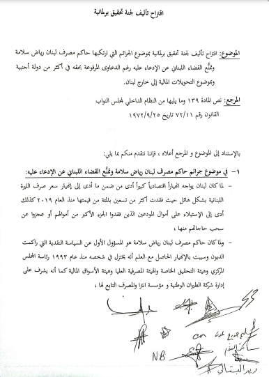 نواب من "لبنان القوي" تقدموا باقتراح تأليف لجنة تحقيق برلمانية بموضوع "جرائم رياض سلامة"