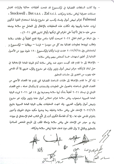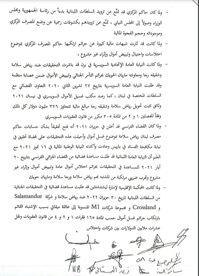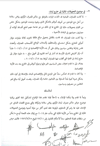 اللبناني عن الادعاء عليه رغم الدعاوى المرفوعة بحقه في أكثر من دولة اجنبية وبموضوع التحويلات المالية الى خارج لبنان.