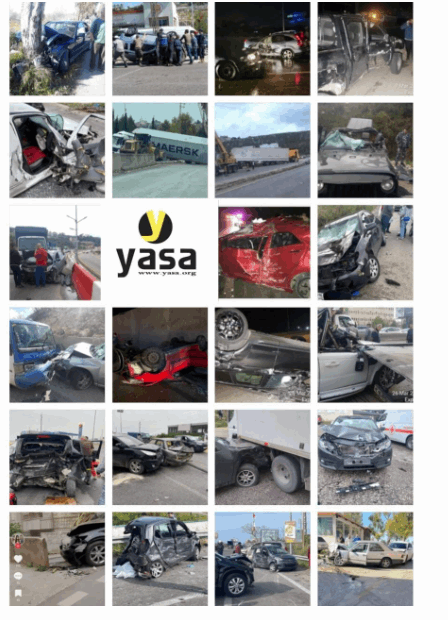 24" من جمعية "اليازا" المعنية بالشأن المروري، سوى دليل حقيقي على المأساة الكبيرة التي يعيشها اللبنانيون بسبب الحوادث المرورية التي تُسجل بشكل شبه يومي على الطرقات. فتظهر الصورة أبرز الحوادث المرورية القاتلة والتي راح ضحيتها شباب وشابات بعمر الورود ولكل صورة منها رواية ألم لن ينتهي بمرور الزمن لدى ذوي الضحايا الذين فجعوا بأحبائهم قتلى على الطرقات.