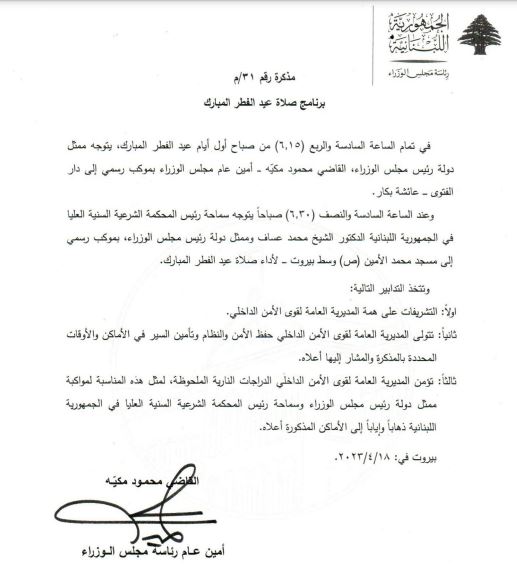 مكية عمّم برنامج صلاة عيد الفطر.. اطلعوا عليه
