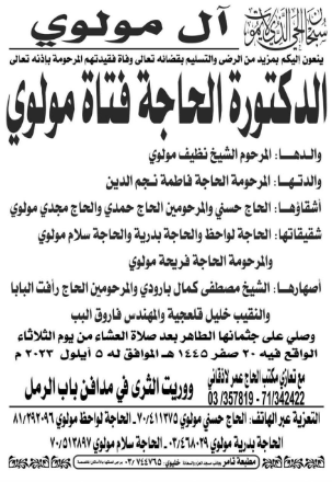 بالتعزية سائلا الله ان يتغمدها بواسع رحمته.
