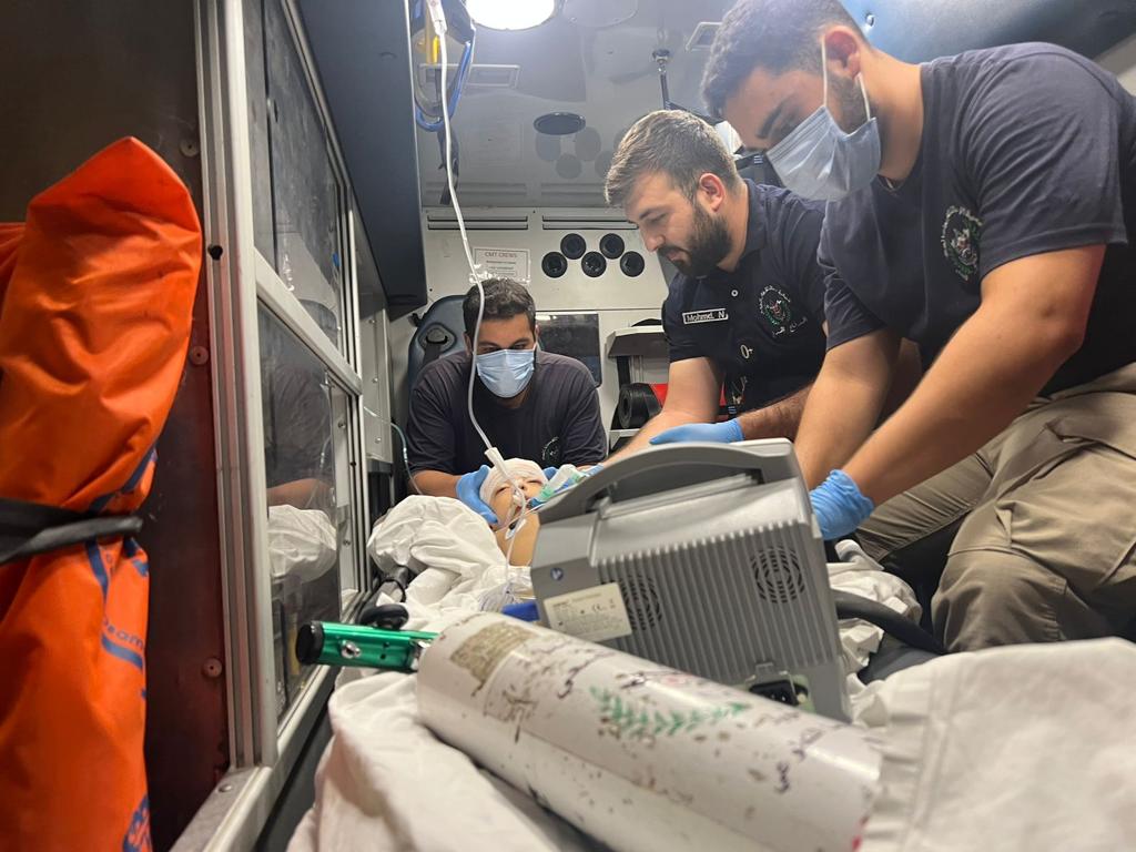 عملت فرق الاسعاف على نقل طفل يبلغ من العمر ٥ سنوات بحالة طارئة نتيجة اصابته بنزيف بالرأس جراء تعرضه لحادث سير على طريق عام برج