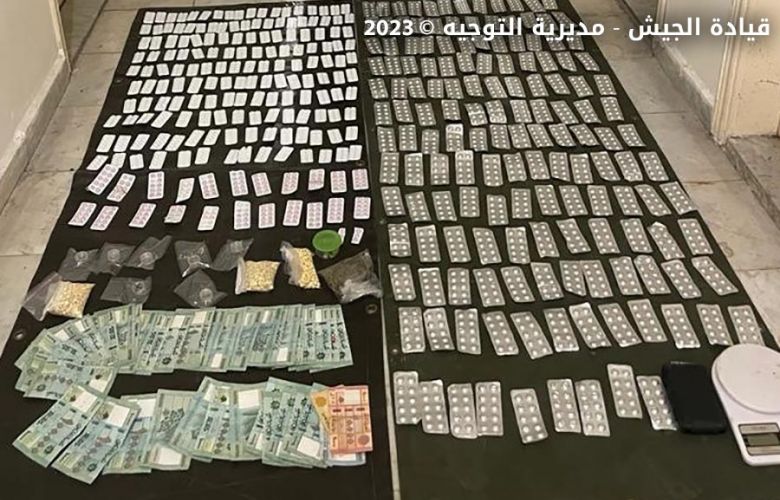 المواطن (م.م.) المطلوب بجرائم تعاطي المخدرات وتأليف عصابة لترويجها، وإطلاق النار باتجاه عنصر أمني وإصابة عدد من المواطنين، إضافة إلى ارتكاب أعمال احتيال، وضُبطت في حوزته كمية كبيرة من المخدرات ومبلغ مالي.