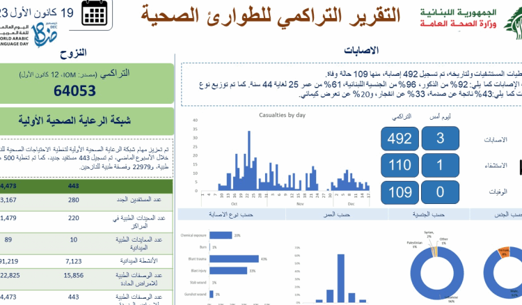 ، التقرير التراكمي للطوارئ الصحية لـ١٩ كانون الاول ٢٠٢٣.