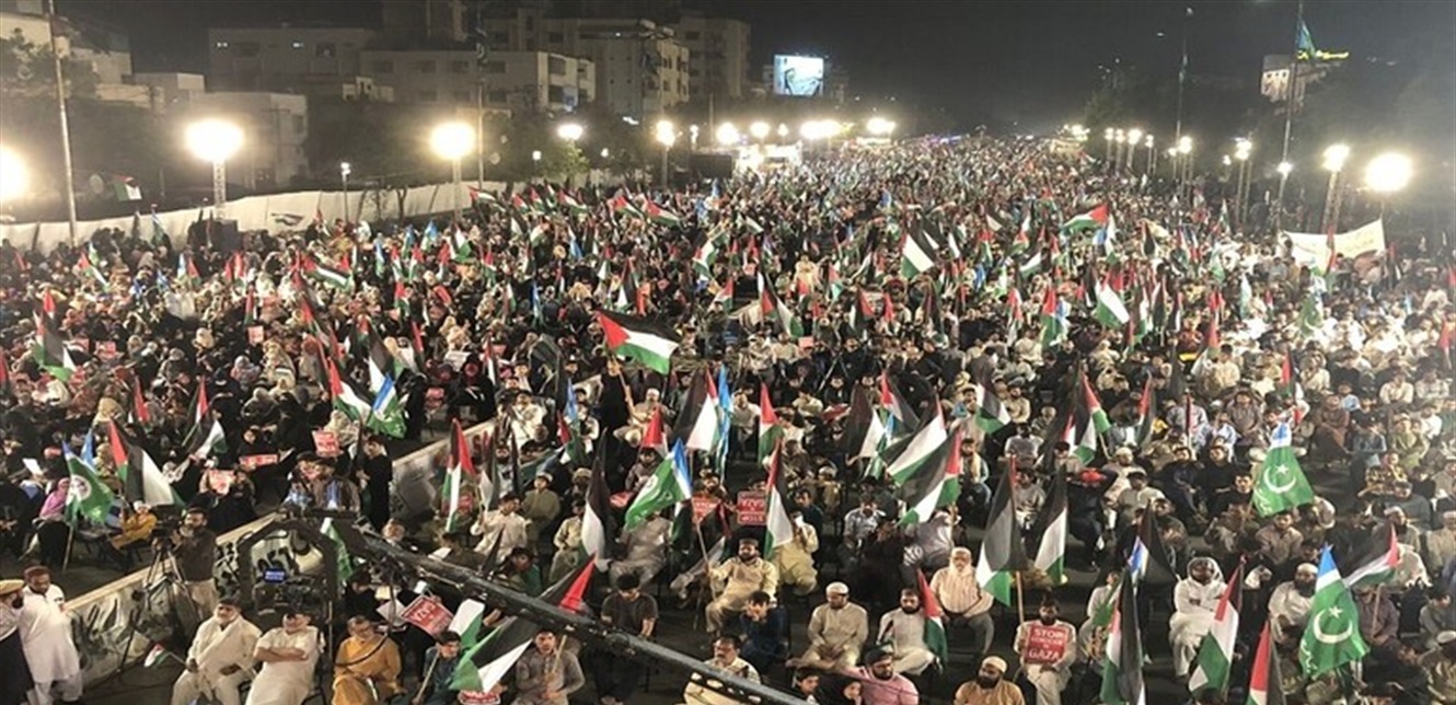 فقد خرج آلاف الأشخاص في مسيرات جابت شوارع كراتشي، حاملين أعلام فلسطين ولافتات كتبت عليها كلمات دعم لقطاع غزة ومطالبة بوقف الحرب.