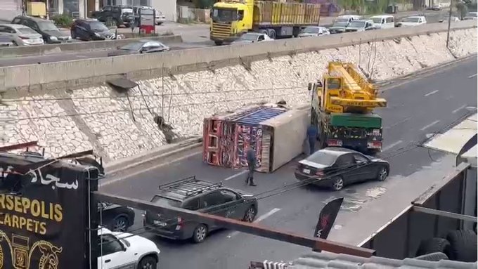 إنقلاب بيك اب وسط الطريق الآن في جونية باتجاه بيروت. pic.twitter.com/5QIJwb1QmK