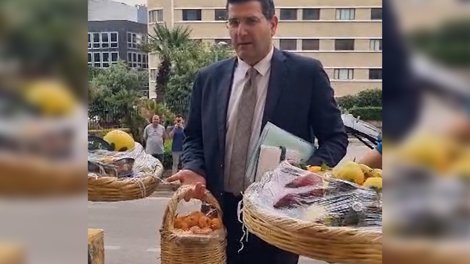 وزير الزراعة يحضر إلى جلسة مجلس الوزراء حاملاً سلّة فواكه "من كل لبنان" (صورة)