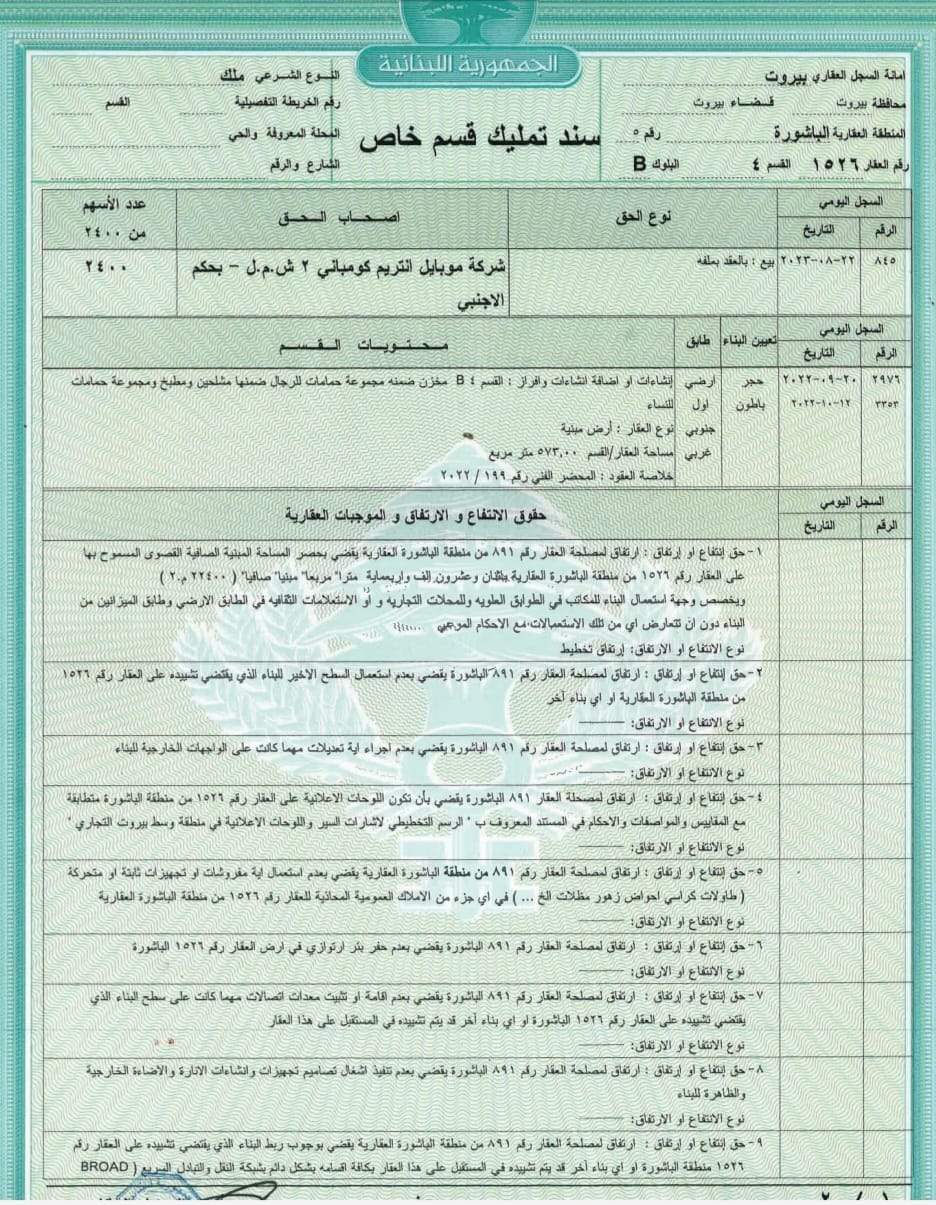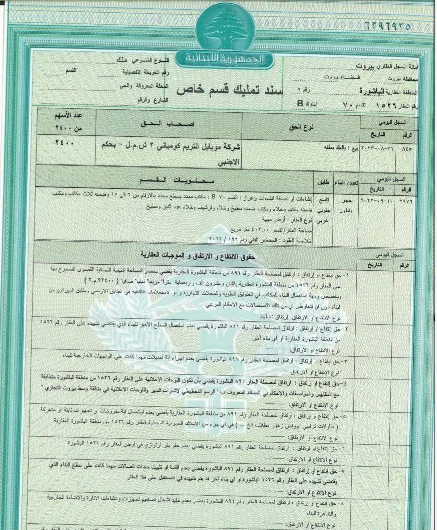 دفلوبمنت بخصوص العقار رقم 1526/الباشورة، الذي كان وقّع بتاريخ 31/7/2019 اي قبل استلام الوزير القرم حقيبة