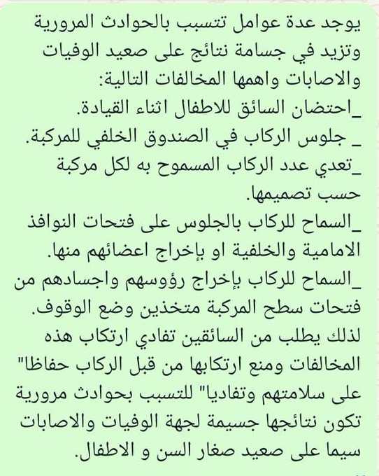 وجّهت غرفة "التحكم المروري التنبيه التالي للسائقين والركاب: