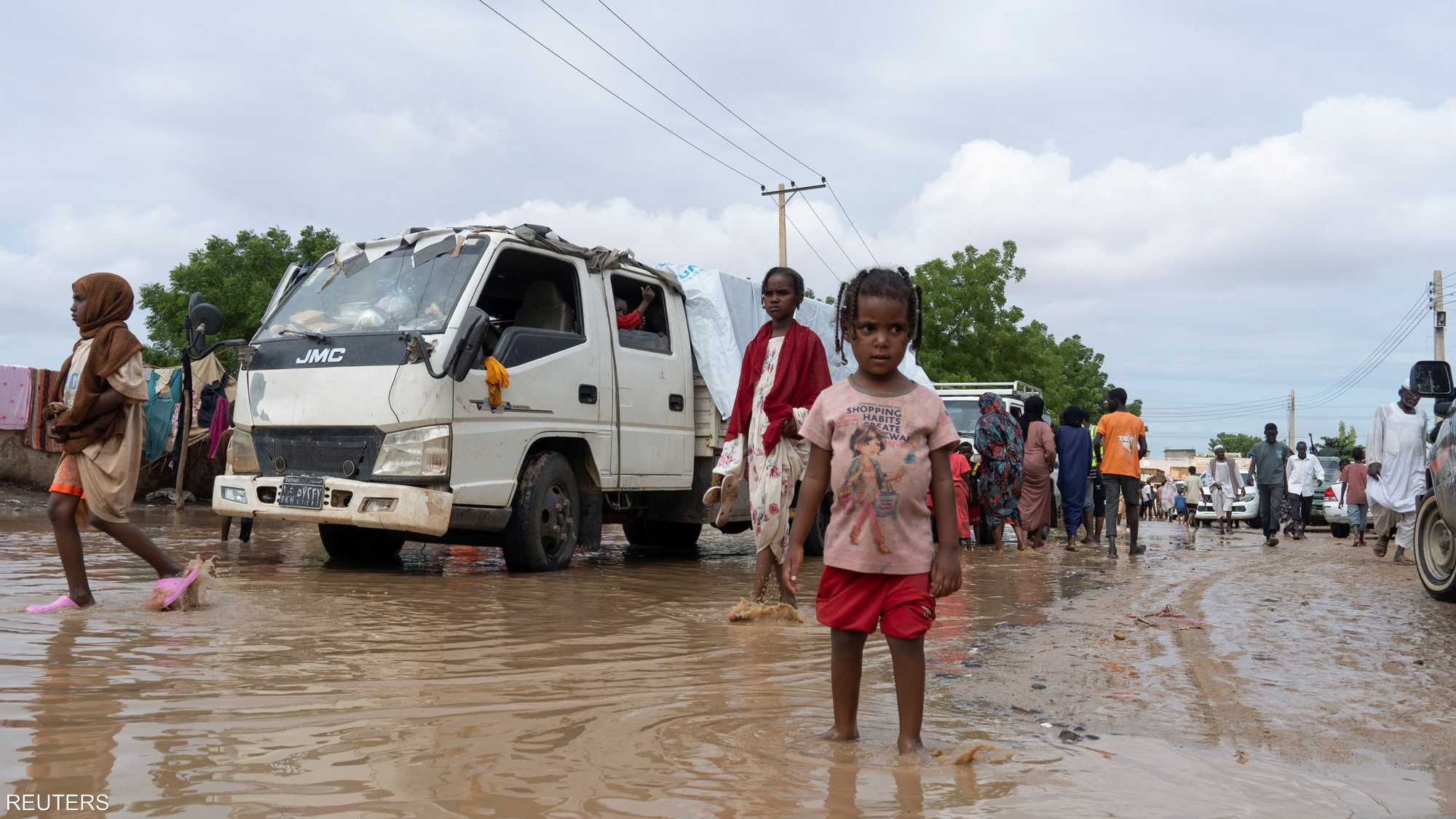 نتيجة السيول والأمطار الغزيرة في 10 ولايات. وتركزت معظم الأضرار في الولايتين الشمالية ونهر النيل. (سكاي نيوز)