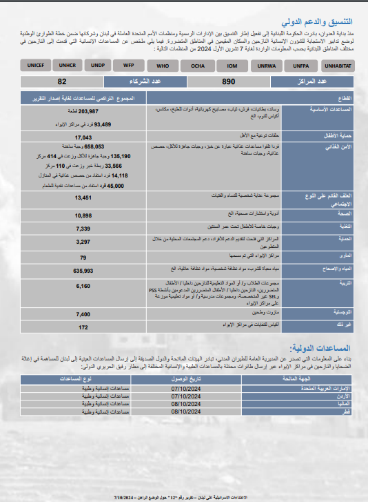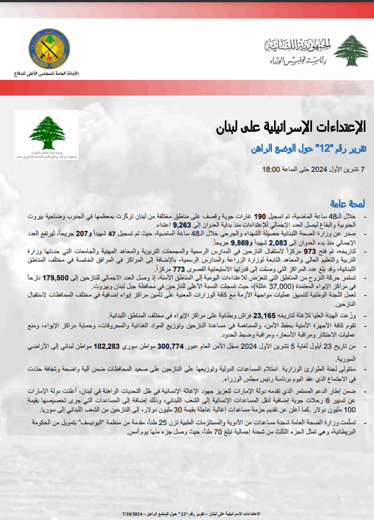 وزعت الامانة العامة للمجلس الاعلى للدفاع، التقرير رقم 12 حول الاعتداءات الاسرائيلية على