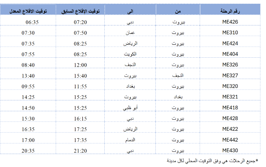 - سيتم تقديم موعد إقلاع ME320/ME321 من بيروت وبغداد